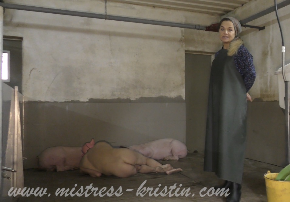 Als fesche Bäuerin mit meiner grünen langen Schürze überm Bauernrock, habe ich zwei süße Schweinchen aus dem großen Stall separiert, um sie mit einem menschlichen Schwein zusammen zu halten und zu füttern. Bevor aber mein Menschenschwein in den Stall zu den echten Viechern kommt, muss es natürlich noch auf die alte Schweinewaage, damit ich weiß, wieviel Gewicht denn die spätere Schlachtung bringen wird. Die zwei rosa Rüsseltiere sind recht zutraulich und beäugen den neuen menschlichen Artgenossen recht aufgeschlossen. Und als es dann aus dem Eimer lecker Futter für alle drei von mir gibt, ist das Eis auch schon gebrochen... ein besonderes Rollenspiel in authentischer Umgebung.